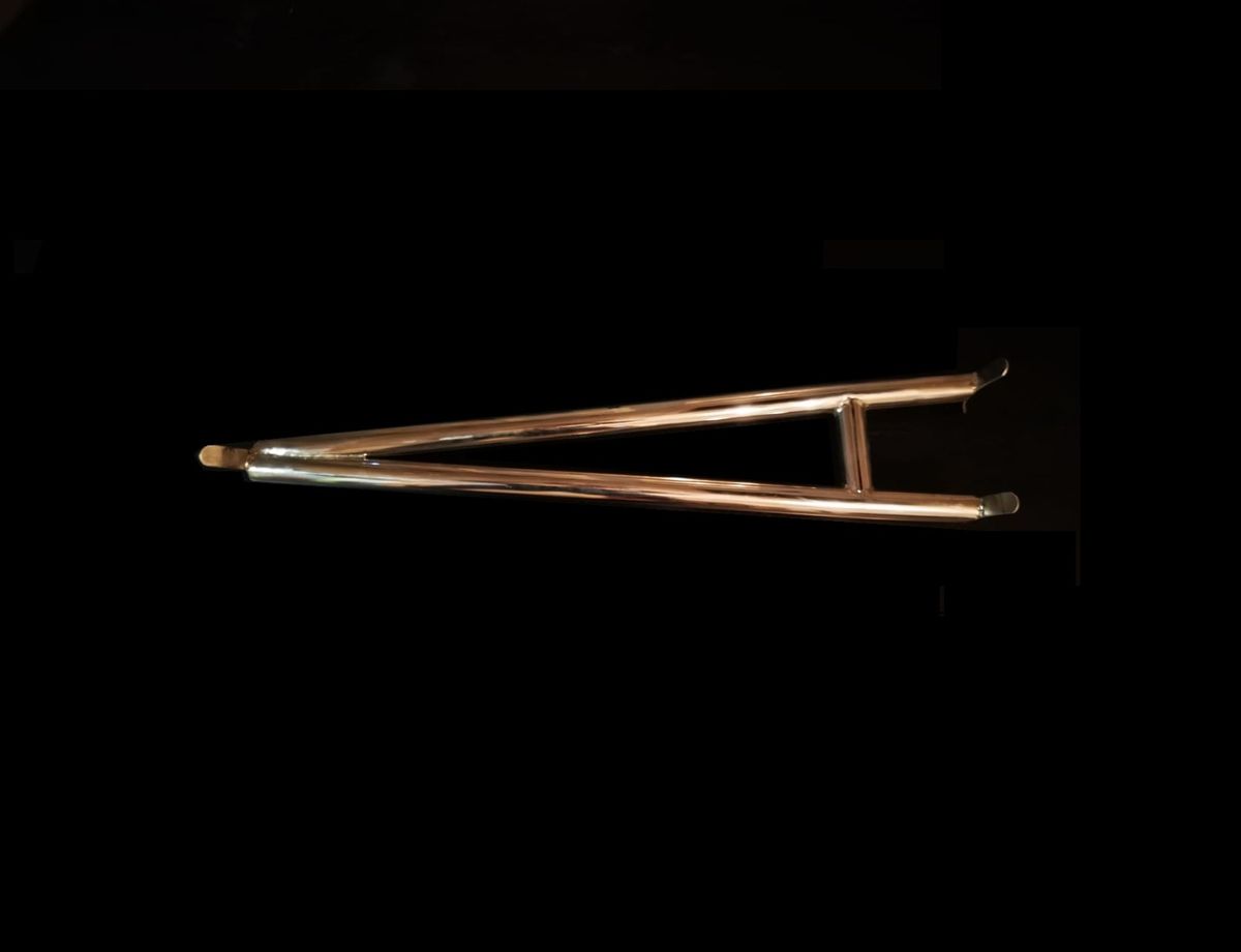 This stainless steel strut brace fits between the two rear shock towers.